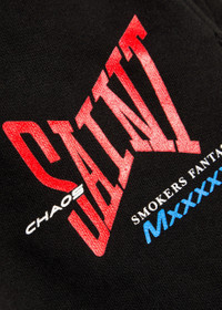 Info & Care Saint MXXXXXX cotton sweatpants Elasticated drawstring waist, side slip pockets, printed logo, back patch pocket, elasticated cuffs Pull on 100% cotton Hand wash Size & Fit Inside leg length: 28.5 inches/ 72.5cm Midweight Relaxed fit Model is 6'1"/ 185cm and wears a size medium