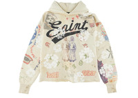 The SAINT Mxxxxxx x Denim Tears Graffiti Hoodie Grey was released as a result of a collaboration between SAINT Mxxxxxx and Denim Tears. This garment comes in a light grey colorway. The hoodie is made from 100% cotton material. Its design features a ribbed trim, an adjustable hood, long sleeves, and a straight hem. The SAINT hoodie has an all-over graphic print in several colors, including red, purple, white, and blue, of a Ripper. For branding, the "Saint" logo is printed on the front in black. The SAINT Mxxxxxx x Denim Tears Graffiti Hoodie Grey was released on March 12th, 2022, with its retail price set at $600. - Season SS22 - Color Grey - Release Date 2022-03-12 - Retail Price 600 - Featured false