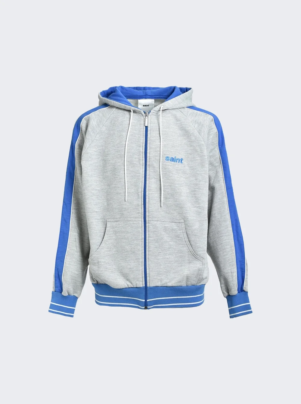 Details - Zip-up cotton track hoodie - Raglan sleeves with track stipe - Contrast blue ribbed trim - Embroidered logo on the chest - Material: 100% Cotton Size Information: Vendor Color Code: Brand Style: SM-HR1-0000-058 Designer/Brand: SAINT MXXXXXX