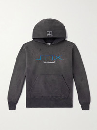 SMX6 Distressed Logo-Print Cotton-Jersey Hoodie Black