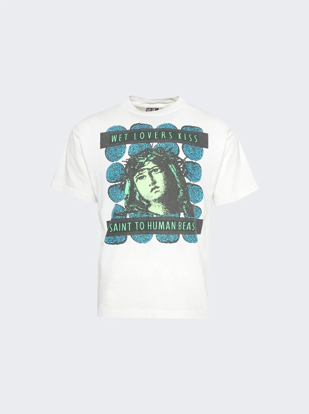 Details - Short sleeve t-shirt - Vintage treatment - Printed graphic - Relaxed fit Dimensions: Model is 6'1"/185cm and is wearing a size M Composition: 100% Cotton Care: Care according to label Brand Style: SM-YS1-0000-009 Designer/Brand: SAINT MICHAEL