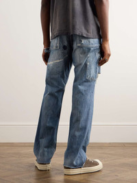 SAINT Mxxxxxx's streetwear is designed to look like thrift store finds, so everything has an eclectic feel. These jeans are cut in a straight-leg profile from blue denim that's heavily distressed with rips and paint splatters. Size & Fit - Fits true to size. Take your normal size - Relaxed-straight leg, low-crotch style - Mid-weight, non-stretchy fabric - Model is shown wearing a M - Model measures: waist size 32, height 6'0"/ 183cm Details & Care - Blue denim - Button and zip fastening - 100% cotton - Hand wash