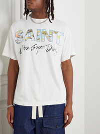 SAINT Mxxxxxx's graphic T-shirt is reminiscent of retro merch. Cut from cotton-jersey, it's printed with bold branding and scribbled with 'Ultra Super Dirty' underneath. Wear yours without a jacket to showcase the logo on the back, too. Size & Fit - Fits true to size. Take your normal size - Designed for a loose fit - Mid-weight, stretchy fabric - Model is shown wearing a M - Model measures: chest 38"/ 96cm, height 6'0"/ 183cm Details & Care - Multicoloured cotton-jersey - 100% cotton - Machine wash