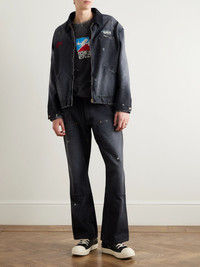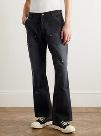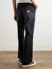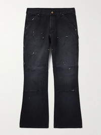 Bootcut Double-Knee Paint-Splattered Cotton-Canvas Trousers Black