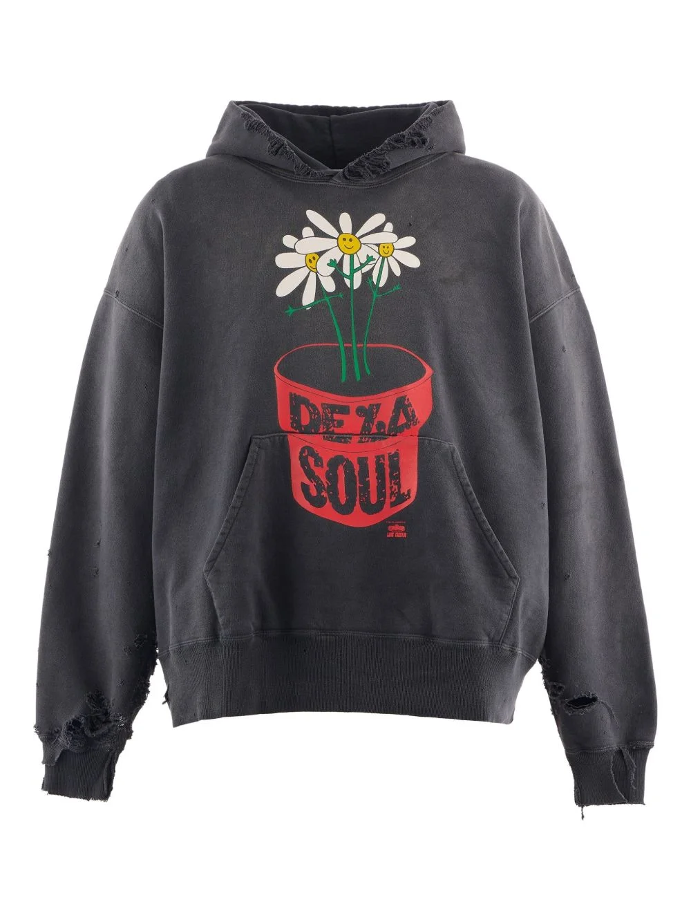 x De La Soul distressed graphic hoodie Highlights - Black - Graphic print - Distressed detailing - Drawstring hood - Pouch pocket - Long sleeves Imported Composition Body: Cotton 100% Washing instructions Read Manufacturer Guidelines