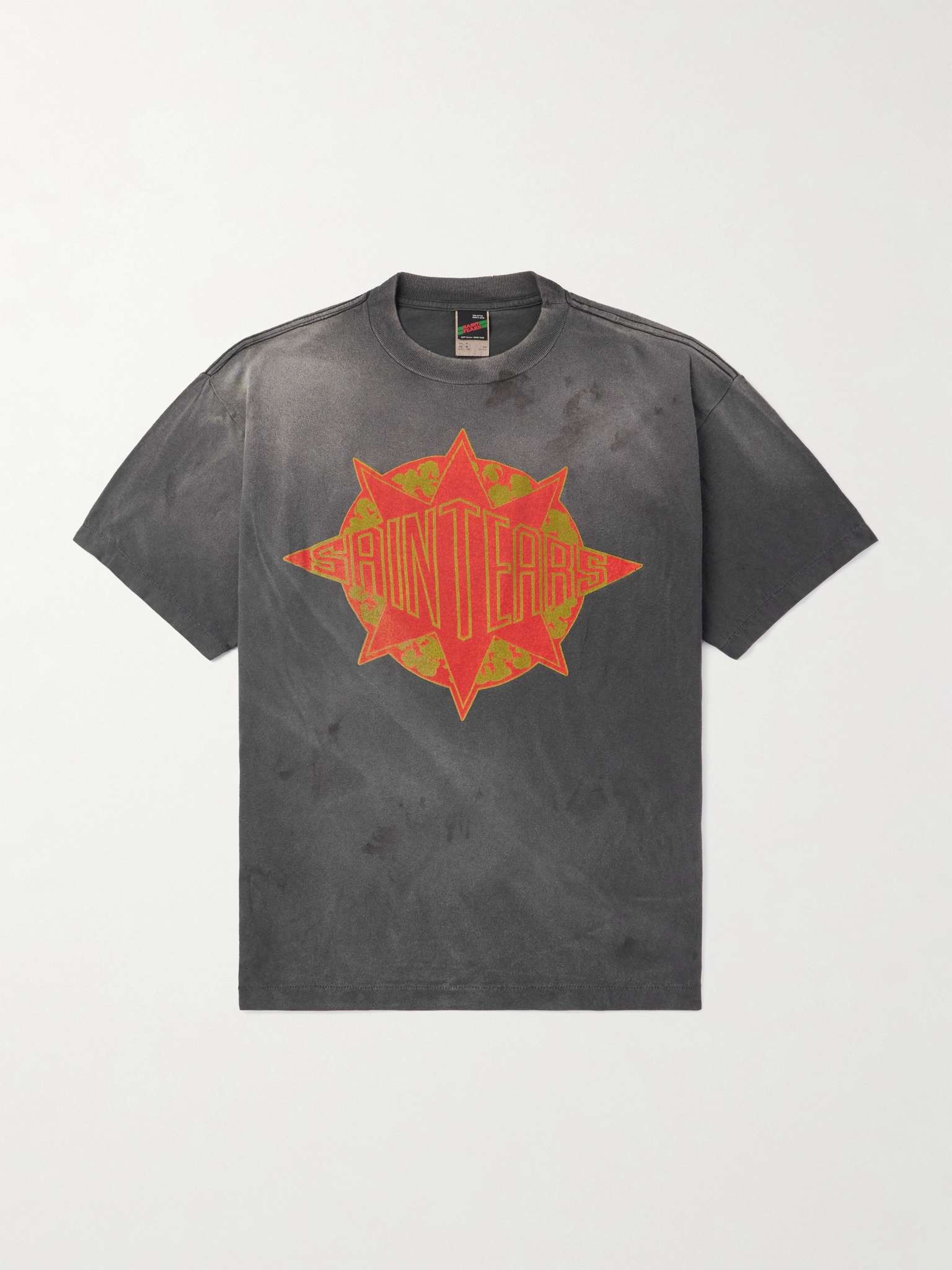 SAINT Mxxxxxx teams up with fellow American streetwear label Denim Tears to create this T-shirt. Cut for an oversized fit from cotton-jersey that's sulphur-dyed and stone-washed for a vintage effect, it's printed with a combined logo at the front and an irreverent parental advisory graphic at the back. Size & Fit - Fits true to size. Take your normal size - Designed for an oversized fit - Lightweight, slightly stretchy fabric - Model is shown wearing a M - Model measures: chest 38"/ 96cm, height 6'0"/ 183cm Details & Care - Multicoloured cotton-jersey - 100% cotton