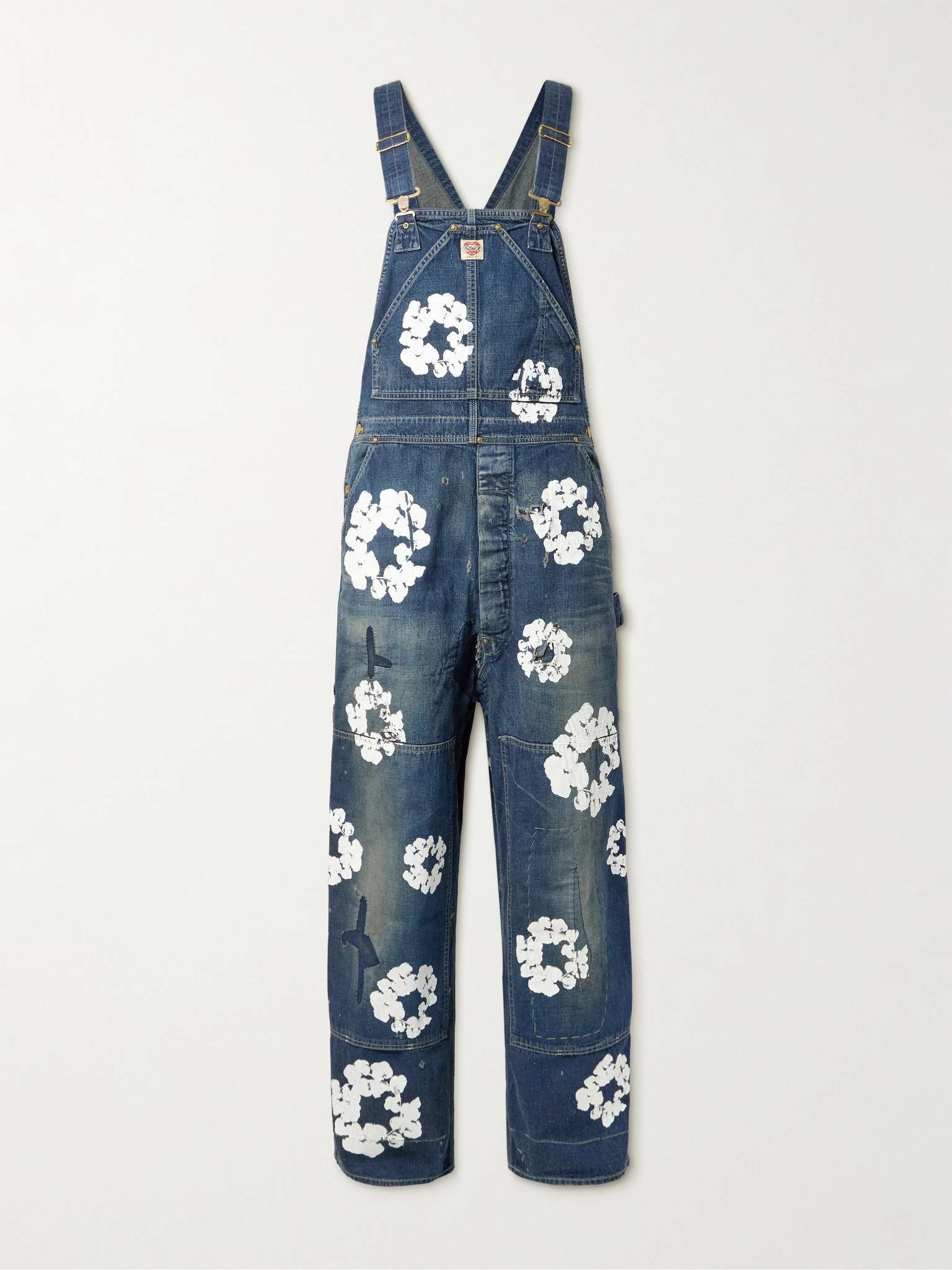 + Denim Tears Distressed Patchwork Floral-Print Denim Overalls