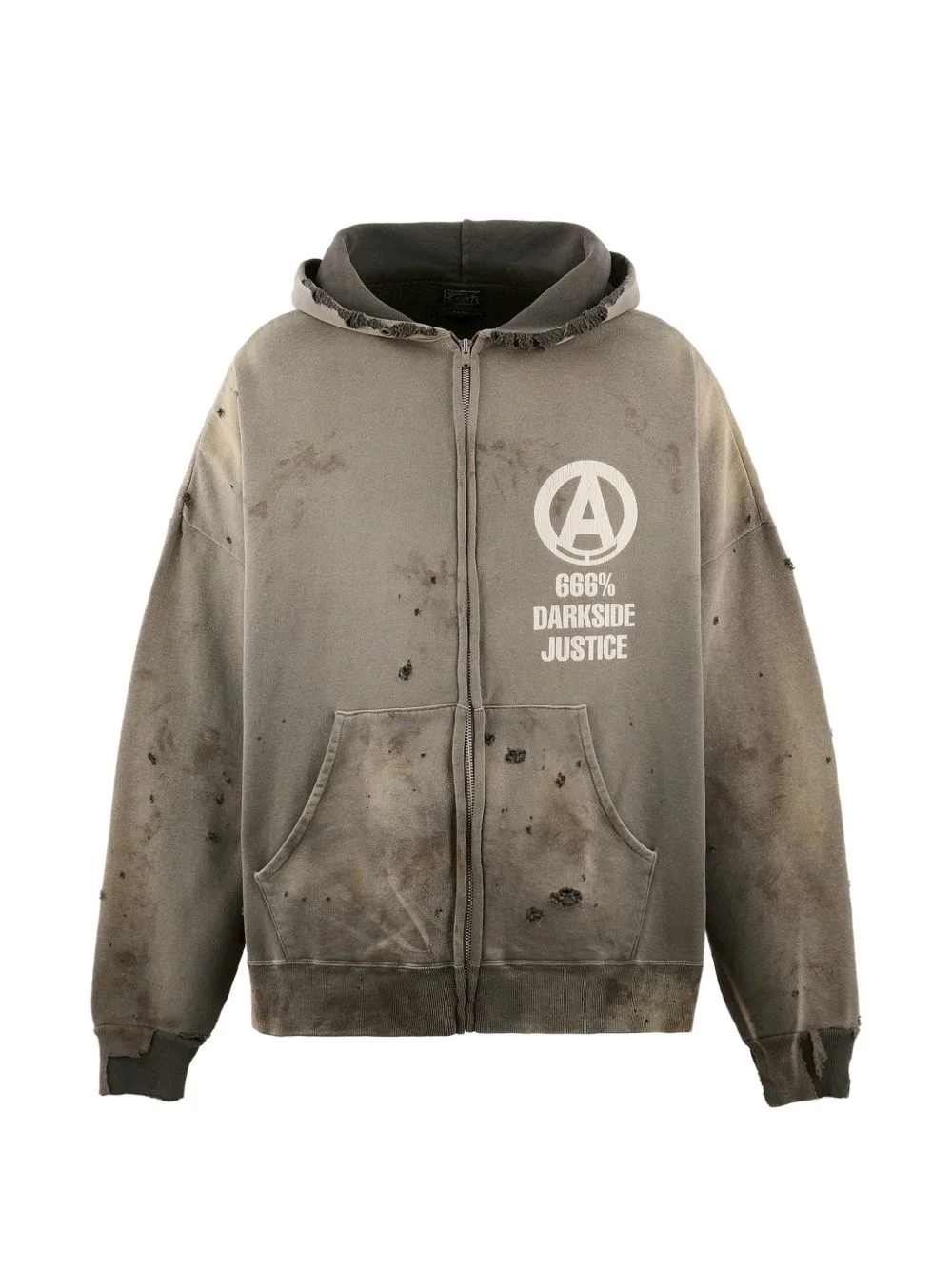 zip-up hoodie Highlights - Grey - Zip fastening - Pouch pocket - Distressed effect - Logo print Imported Composition Cotton 100% Washing instructions Read Manufacturer Guidelines