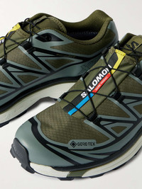 Salomon's technical footwear is built for exploring, whether you're in the city or the trails. - These cult-favourite 'XT-6 GTX' sneakers are made from breathable mesh and treated with a waterproof, PFC-free GORE-TEX finish for protection from the elements - Closed construction prevents debris from getting in, while ample cushioning ensures reliable comfort - Secure Quicklace® system for easy on and off - Specialised lug soles boost traction and stability, whatever the terrain Size & Fit - UK 4 = US 4.5/ EU 36.7 - UK 4.5 = US 5/ EU 37.3 - UK 5 = US 5.5/ EU 38 - UK 5.5 = US 6/ EU 38.7 - UK 6 = US 6.5/ EU 39.3 - UK 6.5 = US 7/ EU 40 - UK 7 = US 7.5/ EU 40.7 - UK 7.5 = US 8/ EU 41.3 - UK 8 = US 8.5/ EU 42 - UK 8.5 = US 9/ EU 42.7 - UK 9 = US 9.5/ EU 43.3 - UK 9.5 = US 10/ EU 44 - UK 10 = US 10.5/ EU 44.7 - UK 10.5 = US 11/ EU 45.3 - UK 11 = US 11.5/ EU 46 - UK 11.5 = US 12/ EU 46.7 Details & Care - Army-green GORE-TEX mesh, forest-green and black rubber - Quicklace® system - Designer colour: Live Night/ Sedona Sage/ Black - Style number: L47732700 - Salomon follows its own size guide, therefore the size stated on the box will differ from the one provided in our size chart. To receive your correct fit, please refer to Size & Fit notes