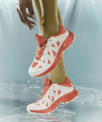 The XT-Whisper Void Ama is a vivid and raw, yet warming expression of power, fluidity and the many ways in which it means to be feminine and free. This empowering shoe adapts and endures in street culture as well as wild nature and reflects the creative world of the artist Ama Lou herself. - Weight : 316 g - Drop : 11 mm Features & Fabrics - Chevron lugs : Lug design with deep penetration and multi-directional grip, improving traction on soft surfaces like mud or loose dirt. - Mud Contagrip® : Built for maximum grip on loose, soft, rugged, and uneven surfaces, Mud Contagrip® uses deep, sharp lugs made from a compound that focuses on adhesion. - Agile Chassis™ System : ACS provides stability and dampening and works in concert with the EnergyCell midsole. - 3D Mesh : 3D open Mesh provides maximum breathability. - Anti-debris Mesh : Tight mesh that prevents debris from being trapped between your foot and the footbed. - Synthetic upper : Synthetic upper material provide great durability and protection for outdoor activities. - Abrasion-resistant TPU material : Durable material that effectively resists environmental factors to limit wear over time. - Textile lining : A soft, breathable lining for extreme comfort. - Lace pocket : Provides easy storage for the Quicklace™ lacing system. - sensiFIT™ : SensiFit™ cradles the foot from the midsole to the lacing system, providing a secure, snug, and virtually customized fit all around the foot. - OrthoLite® diecut sockliner : Cut to the shape of the inner shoe, this OrthoLite® insole provides superior cushioning, breathability and durability, upgrading the comfort and performance of the footwear. - quickLACE™ : Minimalistic and strong lace for one-pull tightening. Easy-on, easy-off. Lacing system : Quicklace® Lining : Textile Inlay sole : Textile Outsole : Rubber Upper : Textile / Synthetic Article ref. L49128800