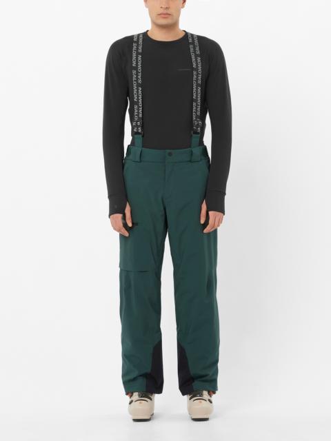 Complementing the Brillant jacket and equipped with all the essential features skiers and snowboarders need when hitting the slopes, Salomon's Brilliant pants offer exceptional protection and comfort. Featuring waterproof and breathable stretch fabric, they ensure you stay dry and comfortable in any weather. - Best for Skiing, Snowboarding , Breathable, Synthetic insulation, Waterproof, Water repellent treatment, Windproof - Weight : 767 g - Fit : Regular - Key Technology : AdvancedSkin Dry, PrimaLoft® Features & Fabrics - AdvancedSkin Dry : AdvancedSkin Dry Technology keeps you dry and protected from the elements, while its breathable membrane ensures optimal comfort by letting moisture escape. - PrimaLoft® : PrimaLoft® insulation delivers exceptional warmth and comfort while remaining soft and highly compressible. Designed for outdoor enthusiasts seeking performance. - 2 Way stretch fabric : Stretching in 2 directions, this fabric provides freedom to move effortlessly while maintaining stability and comfort. - Regular : A good choice for those who want a more classic and traditional look, with little bit of room to move and be comfortable during the activity. - Removable suspenders : Enjoy versatility and comfort with adjustable, detachable suspenders for the best fit. - Drawcord waist adjustment : Achieve the perfect fit with ease, adjusting your waist for personalized comfort and total freedom of movement. - Inner air vent system : Optimized airflow for perfect temperature control, keeping you comfortable and focused throughout your activity. - 2 zipped hand pockets : A perfect balance of protection and security, offering a comfortable space for your hands while keeping your essentials safe and within reach. - 1 zipped thigh pocket : Secure and practical, the zipped thigh pocket keeps your essentials within easy reach - AdvancedSkin Dry 20K/20K : AdvancedSkin Dry 20K/20K offers ultimate protection from rain, snow, and wind while allowing moisture to escape, ensuring comfort with 20,000mm waterproofing and breathability. - PrimaLoft® Black Eco 60g/m² : PrimaLoft® Black Eco 60g/m² offers lightweight warmth made from recycled materials. Breathable, water-resistant, and ultra-compressible. Bottom length : Long Care & Durability - Do not iron print - Wash with like colours - Cool iron - Do not bleach - Do not dry clean - Machine wash cold (30°c) - Tumble dry low - Do not use fabric softener - Remove immediately - Wash with fasteners closed Article ref. LC2635600
