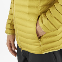 Our men’s Salomon Elixir Micro Down hooded jacket is designed for ultra-light warmth during all your favorite mountain activities. Advanced HeiQ XReflex™ technology powered by Xefco and bodymapped 800 fill power down make this one of our lightest and warmest jackets – that’s effortless to pack away. Ready to take on steep paths and powdery slopes. - Best for Everyday use, Hiking, Skiing, Snowboarding, Winter adventure , Breathable, Down insulation, Recycled material, Water repellent treatment - Weight : 326 g - Activities : Everyday use, Hiking, Skiing, Snowboarding, Winter adventure - Fit : Regular - Key Technology : HeiQ XReflex™ powered by Xefco - Benefits : Breathable, Down insulation, Recycled material, Water repellent treatment Features & Fabrics CONCEPT & TECHNOLOGY - HeiQ XReflex™ powered by Xefco : Efficient warmth with less bulk, HeiQ XReflex™ is a radiant barrier technology that reflects body heat, enhancing insulation while maintaining breathability HOOD - Fixed hood : The hood is securely attached to the garment for a seamless, comfortable fit. ZIP - Water repellent center front zip POCKETS - Zippered chest pocket : A practical, zipped closure to keep your must-haves secure and always within reach. - 2 zipped hand pockets : A perfect balance of protection and security, offering a comfortable space for your hands while keeping your essentials safe and within reach. VISUAL ASPECT - Reflective branding : Designed with reflective branding to keep you visible in low-light conditions. INSULATION - 800 fillpower : Fill power is a measure of the loft of a down product. The higher the fill power, the more air an ounce of the down can trap, and thus the more insulating ability. - Down insulation 90/10 : Down offers the best warmth-to-weight ratio (90/10), delivering exceptional insulation without bulk; ideal for maximum comfort and performance in cold conditions SUSTAINABILITY - PFC-Free DWR : The PFC-free durable water-repellent finish keeps you dry while reducing environmental impact. Benefits : Breathable, Down insulation, Recycled material, Water repellent treatment Care & Durability - Tumble dry low with tennis balls - Do not bleach - Do not dry clean - Machine wash cold (30°c) - Tumble dry low - Do not use fabric softener - Do not iron - Wash separately Article ref. LC2474600