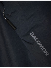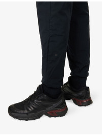 PRODUCT DETAILS - Salomon stretch-woven jogging bottoms - 88% polyamide, 12% elastane; filling 100% polyester; lining 100% polyester - Relaxed fit, mid-rise, tapered leg, drawstring elasticated waistband, two zip pockets at front, brand print at front and back, all-over padded, fully lined, elasticated cuffs, breathable - Machine wash at 30°C - Model is 6ft 2in/1.88m and wears a size medium - Midweight, non-stretch Ref: R04519143