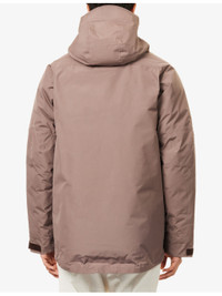 PRODUCT DETAILS - Salomon shell-down jacket - 100% polyester; filling 90% down, 10% feathers; lining 100% polyamide - Concealed hook-and-loop tape and zip fastening at front - Relaxed fit, high-neck, drawstring hood, long sleeves, brand print at sleeve, hook-and-loop tape cuffs, internal elasticated cuffs, four zip pockets at front, all-over padded, fully lined, drawstring hem, waterproof, windproof, breathable - Machine wash at 30°C - Size medium: length 29in / 74cm, chest 46in / 117cm - Model is 6ft 2in/1.88m and wears a size medium - Midweight, non-stretch Ref: R04566151