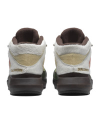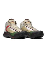 Get back to nature with The Broken Arm x Salomon X-Pastoral collab. Inspired by the lives of nomadic shepherds who move from place to place in search of natural foraging resources, this tribute to the hiking boot is enhanced with nature’s hues and textures, and a durable and comfortable upper for a striking and rustic yet modern look and feel. - Weight : 386 g - Drop : 9 mm Features & Fabrics - Climbing zone : An area in the forefoot delivering grip, durability, and energy transmission while climbing or scrambling. - Alpine Contagrip® : Alpine Contagrip® has strong adherence and a lug geometry designed specifically for changing alpine terrain, with unparalleled, durable grip for full confidence and control. - Protective toecap - OrthoLite® diecut sockliner : Cut to the shape of the inner shoe, this OrthoLite® insole provides superior cushioning, breathability and durability, upgrading the comfort and performance of the footwear. - Flat laces : Flat laces reduce pressure points over the instep for a consistent, comfortable fit. Lacing system : Quicklace® Waterproofness : None Lining : Textile Inlay sole : Textile Outsole : Rubber Upper : Leather / Synthetic Article ref. L47969000