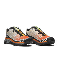 The XT-6 Andrew is a love letter to Miami, expressed through the iconic staple of the Florida Stone Crab. Inspired by the sustainable and striking shellfish, this XT-6 boasts gradient coral colors and dark specks, glossy silvers to represent its classic serving trays, bright greens and yellows for citrus wedges and icy details on the sockliner. - Drop Value:10 MM - Weight per unit:13 OZ Features & Fabrics Lacing System - quickLACE™ : Minimalistic and strong lace for one-pull tightening. Easy-on, easy-off. Inlay Sole - Textile Lining - Textile Outsole - Rubber Upper - Synthetic / Textile Chassis - agileChassis System : ACS provides stability and dampening and works in concert with the EnergyCell midsole. Insole - Molded OrthoLite® sockliner : Molded to match the contours of your foot, this OrthoLite® insole provides superior cushioning, breathability and durability, to upgrade the comfort and performance of your shoe. Lining Fabrics - Textile Lining : A soft, breathable lining for extreme comfort. Outsole Type - Mud contaGRIP® : Built for maximum grip on loose, soft, rugged, and uneven surfaces, Mud contaGRIP® uses deep, sharp lugs made from a compound that focuses on adhesion. Upper Construction - Protective Toecap - Lace Pocket : Provides easy storage for the Quicklace™ lacing system. - sensiFIT™ : sensiFIT™ cradles the foot from the midsole to the lacing system, providing a secure, snug, and virtually customized fit all around the foot. - endoFit™ : An internal fit sleeve designed to hug the foot in exactly the right places and provide a precise fit. Article ref.L49257500