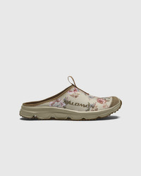 Beams’ new collaboration with Salomon embodies the ideas of self care and living present in the moment. This in turn makes it only fitting that the subject of the joint foray is Salomon’s new recovery shoe, the RX Slide 3.0. Designed for wear after rigorous physical activity, the slip-on style boasts lightweight construction featuring a breathable mesh upper, paired with an oversized EVA midsole that offers high energy return for a soft ride. The collaborative pair is detailed with co-branding on the cork insole, while also incorporating a Salomon-branded tongue pull. Size & Fit Order your regular size. Product Details Mesh and synthetic upper. Floral motif. Reinforced suede toe cap. Stitched webbing at the medial area. Oversized EVA midsole with high energy return provides a soft ride. Chevron lugs enhance traction. Salomon-branded tongue pull. Co-branded cork insole.