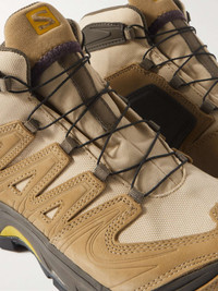 Salomon's innovative shoes are made to perform under all conditions. - Designed for adventures on rugged terrains, these XA Pro sneakers are panelled from GORE-TEX®, leather and rubber - 3D Advanced Chassis™ layered between outsoles and midsoles maximises motion control and agility - OrthoLite® sockliners mould to the contours of your feet and cushion your instep during impact Size & Fit - Fits true to size. Take your normal size - UK sizing Details & Care - Beige GORE-TEX® and leather (Calf); brown, black and yellow rubber - Lace-up - Come in a presentation box