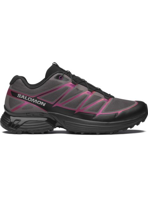 The legacy Salomon XT-Pathway 2 is shown in a new light, a spectrum of colors for those who choose to stand out. This reimagined trail runner brings its trademark secure foothold technologies, protective toe cap and anti-debris mesh, into a new style that celebrates individuality through iridescence for a unique form of self-expression. - Weight : 283 g - Drop : 11 mm Features & Fabrics - Chevron lugs : Lug design with deep penetration and multi-directional grip, improving traction on soft surfaces like mud or loose dirt. - Mud Contagrip® : Built for maximum grip on loose, soft, rugged, and uneven surfaces, Mud Contagrip® uses deep, sharp lugs made from a compound that focuses on adhesion. - Agile Chassis™ System : ACS provides stability and dampening and works in concert with the EnergyCell midsole. - Anti-debris Mesh : Tight mesh that prevents debris from being trapped between your foot and the footbed. - Single layer mesh : A single layer of Mesh, close to the foot, for maximum feel. - Textile lining : A soft, breathable lining for extreme comfort. - Lace pocket : Provides easy storage for the Quicklace™ lacing system. - Protective toecap - sensiFIT™ : SensiFit™ cradles the foot from the midsole to the lacing system, providing a secure, snug, and virtually customized fit all around the foot. - Protective mudguard : A wrap of leather, synthetic or rubber around the base of the foot that protects the lateral and medial sides of the foot. - OrthoLite® diecut sockliner : Cut to the shape of the inner shoe, this OrthoLite® insole provides superior cushioning, breathability and durability, upgrading the comfort and performance of the footwear. - quickLACE™ : Minimalistic and strong lace for one-pull tightening. Easy-on, easy-off. Lacing system : Quicklace® Waterproofness : None Lining : Textile Inlay sole : Textile Outsole : Rubber Upper (MCL) : Textile Article ref. L47795400
