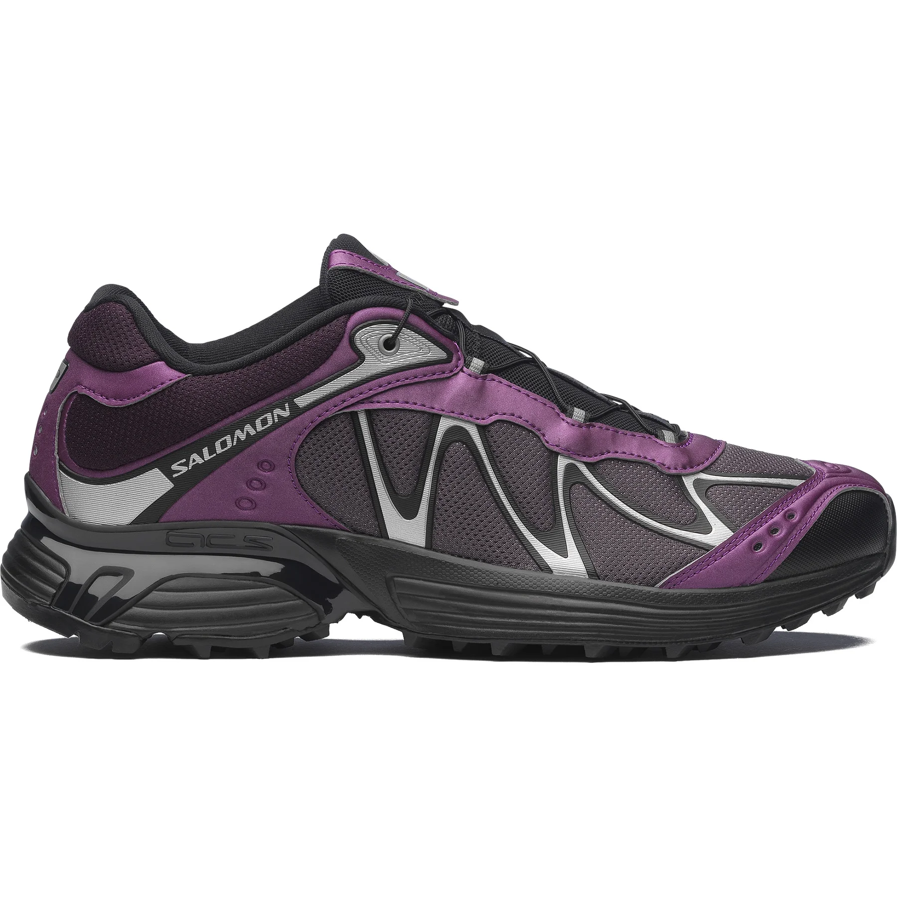 The perfect play of retro and futuristic aesthetic, the XT-Whisper embodies a spectrum of individuality for those who are destined to stand out. XT-Whisper brought empowerment to the first female racers but is now worn and celebrated by all through this new multi-dimensional hue, shining bright for every individual's self-expression. - Weight : 290 g - Drop : 11 mm Features & Fabrics - Chevron lugs : Lug design with deep penetration and multi-directional grip, improving traction on soft surfaces like mud or loose dirt. - Mud Contagrip® : Built for maximum grip on loose, soft, rugged, and uneven surfaces, Mud Contagrip® uses deep, sharp lugs made from a compound that focuses on adhesion. - Agile Chassis™ System : ACS provides stability and dampening and works in concert with the EnergyCell midsole. - 3D Mesh : 3D open Mesh provides maximum breathability. - Anti-debris Mesh : Tight mesh that prevents debris from being trapped between your foot and the footbed. - Synthetic upper : Synthetic upper material provide great durability and protection for outdoor activities. - Reflective details - Textile lining : A soft, breathable lining for extreme comfort. - Lace pocket : Provides easy storage for the Quicklace™ lacing system. - Protective toecap - sensiFIT™ : SensiFit™ cradles the foot from the midsole to the lacing system, providing a secure, snug, and virtually customized fit all around the foot. - OrthoLite® diecut sockliner : Cut to the shape of the inner shoe, this OrthoLite® insole provides superior cushioning, breathability and durability, upgrading the comfort and performance of the footwear. - quickLACE™ : Minimalistic and strong lace for one-pull tightening. Easy-on, easy-off. Lacing system : Quicklace® Waterproofness : None Lining : TEXTILE 100%POLYESTER Inlay sole : Textile Outsole : Rubber Upper (MCL) : Textile / Synthetic Article ref. L47795500