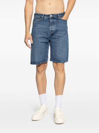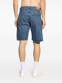 knee-length denim shorts Highlights - Blue - Cotton - Denim - Whiskering effect at the thighs - Logo patch to the rear - Belt loops - Knee-length - Front button and zip fastening - Classic five pockets Imported Composition Cotton 100%