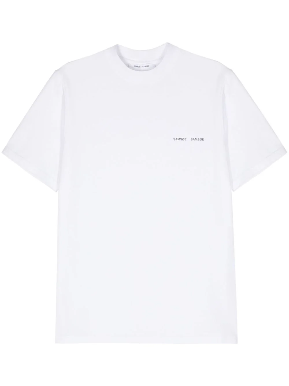 Norsbro logo-print T-shirt Highlights - White - Organic cotton - Jersey texture - Logo print at the chest - Crew neck - Short sleeves - Straight hem Imported Composition Organic Cotton 100% SIZE & FIT FittingInformation Designed for a regular fit allowing for a comfortably loose fit throughout the body Made from a midweight non-stretch fabric, this piece offers minimal elasticity when worn