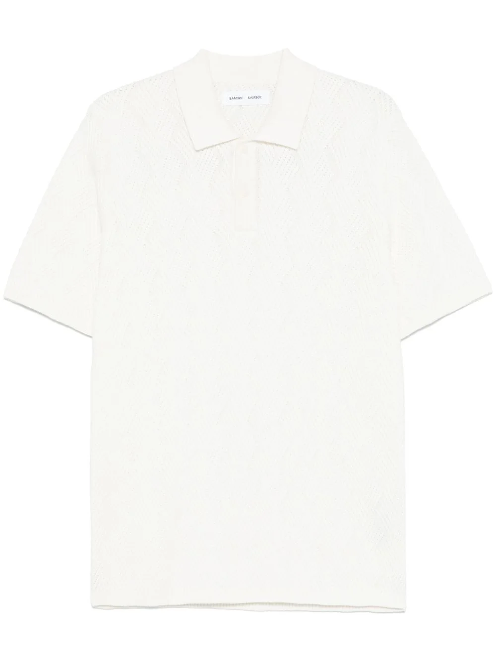 Safinn polo shirt Highlights - White - Short front button fastening - Ribbed cuffs and hem - Diamond pattern - Short sleeves Imported Composition Organic Cotton 85%, Wool 15% SIZE & FIT Model measurements Height 6 ft 2 in(1.87 m) Bust/Chest 37.79 in(96 cm) Hips 37.79 in(96 cm) Waist 30.31 in(77 cm) FittingInformation Designed for a regular fit, this polo shirt offers a comfortable loose fit throughout the body Made from a midweight non-stretch fabric, this piece offers minimal elasticity when worn