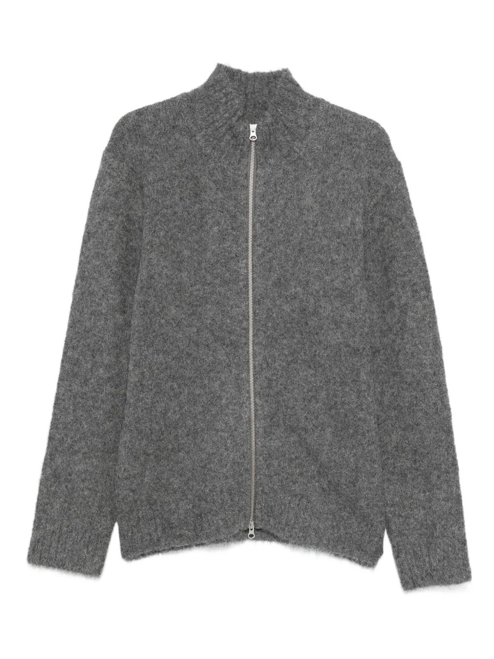 zip-up cardigan Highlights - Grey - High neck - Front zip front - Long sleeves Imported Composition Alpaca 59%, Acrylic 25%, Polyamide 15%, Elastane 1% SIZE & FIT Model measurements Height 6 ft 0 in(1.84 m) Bust/Chest 35.82 in(91 cm) Hips 37 in(94 cm) Waist 28.34 in(72 cm) Washing instructions Read Manufacturer Guidelines