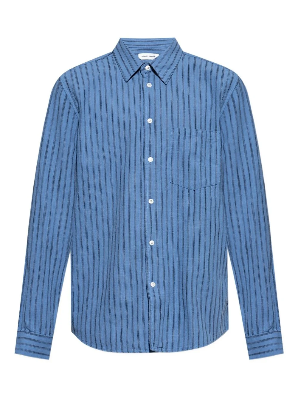 striped shirt Highlights - Cerulean blue - Front button fastening - Chest patch pocket - Classic collar - Long sleeves Imported Composition Organic Cotton 55%, Linen/Flax 45% SIZE & FIT FittingInformation Designed for a regular fit, allowing for a comfortably loose fit throughout the body Made from a midweight non-stretch fabric