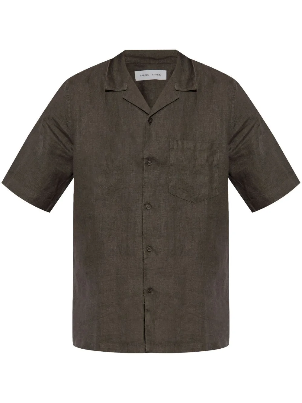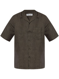 short-sleeve button-up shirt Highlights - Dark green - Button-up closure - Open collar - Single chest pocket - Relaxed silhouette - Short sleeves - Lightweight design - Casual appeal Imported Composition Linen/Flax 100%