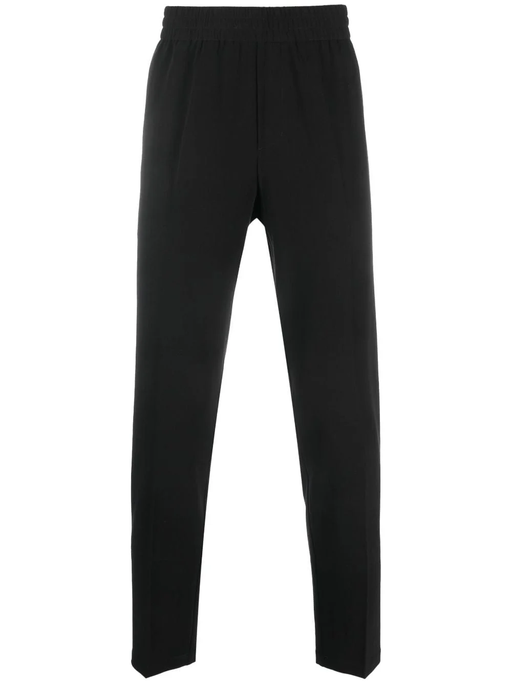 Smithy tapered-leg trousers Highlights - Black - Cotton - Elasticated waistband - Cropped - Tapered leg - Rear welt pocket Imported Composition Outer: Recycled Polyester 36%, Viscose 32%, Polyester 30% Lining: Cotton 100% Spandex/Elastane 2% SIZE & FIT Model measurements Height 6 ft 1 in(1.85 m) Bust/Chest 38.58 in(98 cm) Hips 37 in(94 cm) Waist 30.31 in(77 cm) FittingInformation Designed for a slim tapered leg, offering a close fit that sits just away from the leg with a closer fit towards the ankle Adjust this piece’s waistband to your preference using the drawstring Made from a midweight stretch fabric, this piece offers elasticity and flexibility when worn This piece fits true to size – take your usual size Washing instructions Machine Wash