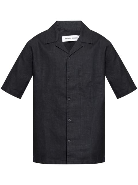 striped short-sleeve shirt Highlights - Grey - Vertical stripe pattern - Camp collar - Short sleeves - Front button fastening - Chest patch pocket Imported Composition Cotton 55%, Linen/Flax 45% Washing instructions Read Manufacturer Guidelines