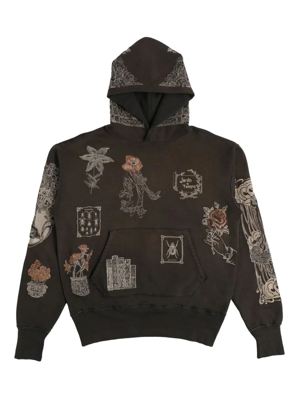Jardin floral-embroidered hoodie Highlights - Brown - Floral embroidered - Graphic embroidered - Hood - Kangaroo front pocket Imported Composition Cotton 100% Washing instructions Machine Wash