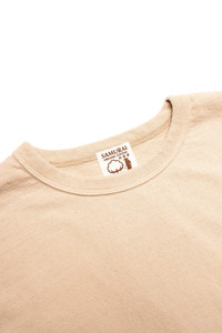 JAPANESE COTTON MADE T-SHIRT A t-shirt fabric made with an uneven #10 yarn spun in the same way as our 17oz “Zero” denim. The weight is 16oz. Natural color: Purposely not bleached or dyed, we’ve preserved the natural ecru color and atmosphere of the organic cotton itself. This color is known as ‘kinari’ in Japanese. Black bean color: The place where we grow our organic cotton is called Sasayama and it is also home to local black soybean production. We’ve used the juice of these black beans (which is normally just thrown away) as a natural dye, resulting in a very unique, organic, and eco-friendly color. Chestnut color: Along with black soybeans, the Sasayama area is also famous for its own brand of chestnuts called “Tamba” chestnuts. We’ve extracted a dye from the astringent skins of these chestnuts and mixed it up to make a really attractive color, falling somewhere between beige and brown.