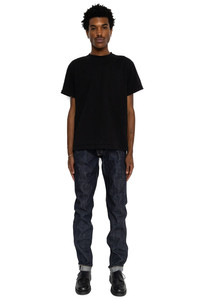 - Color: Indigo - Relax tapered - Mid high rise - Samurai original 17oz selvedge denim - Left Hand Twill - Copper coin rivet - Cow leather patch - Plain back pocket - One Wash - 100% cotton - Made In Japan - Model is 6'2 wearing a size 32