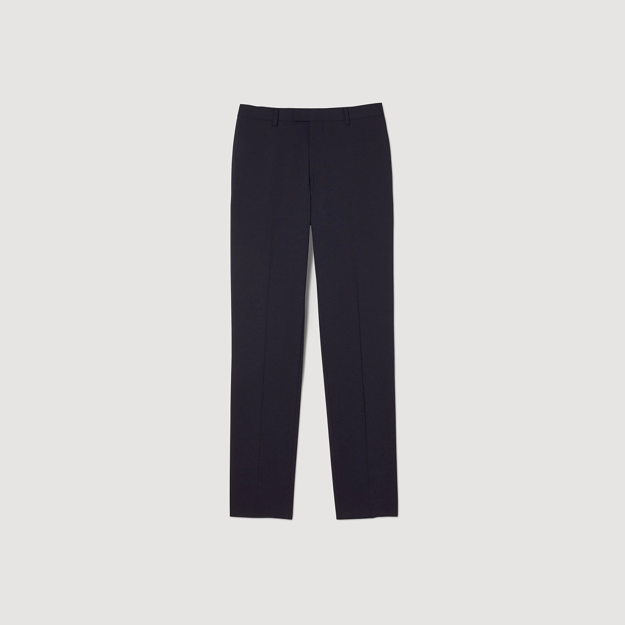 Sandro men's suit pants • Wool suit pants • Fitted cut • Zip, hook and button fastening under a placket • Two slanted side pockets • Buttoned piped pockets at the back • Belt loops • This trousers goes with the wool suit jackets Model is wearing a size 38 and is 6'1'' Occasionally, a few alterations may be necessary to make the suit fit perfectly. If that is the case, please be advised that you can have it delivered to the store or else reserve in store, so that our sales staff can help and advise you on potential alterations. Sandro is committed to ever more responsible fashion. As part of our traceability project in partnership with Fairly Made, we openly reveal information on the origin and manufacture of our clothing. All the stages for making and transforming these trousers have been carried out in China, using wool from Australian farms. The wool in this item comes from extensive farming, which respects animal welfare and contributes to the preservation of local biodiversity. The model is 189 cm / 6'2 tall and wears a size S / 8 UK COMPOSITION Main fabric: 98% wool, 2% elastane Belt lining: 65% polyester, 35% cotton Trouser lining: 100% polyester Pocket lining: 65% polyester, 35% cotton Reference: SHPPA00263_44