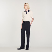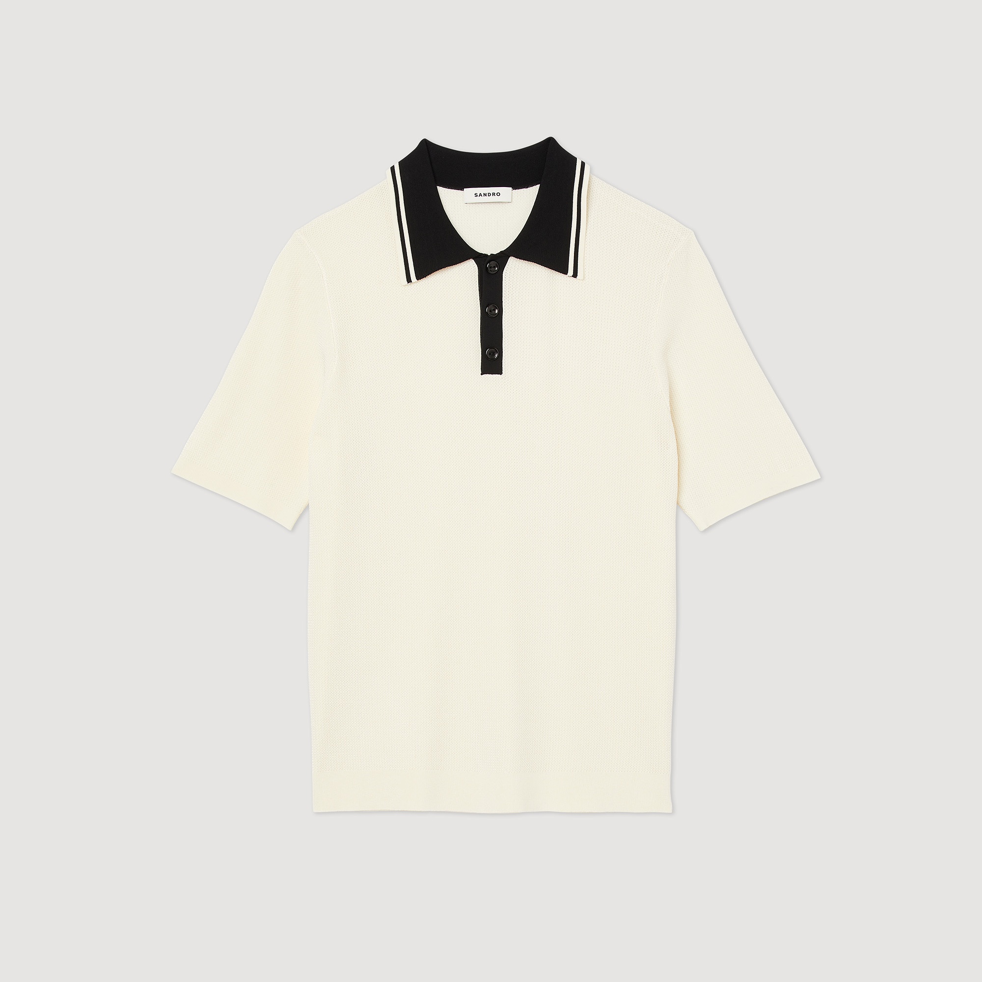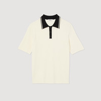 Short-sleeved polo shirt with a contrasting button-up striped collar. Sandro Men's polo shirt Button-up striped polo collar Short sleeves Model is wearing a size S and is 6'3''. Reference : SHPTR00466 MATERIALS Main fabric: 75% viscose, 22% polyamide, 3% elastane