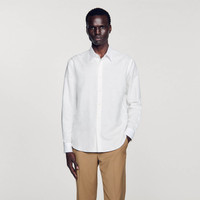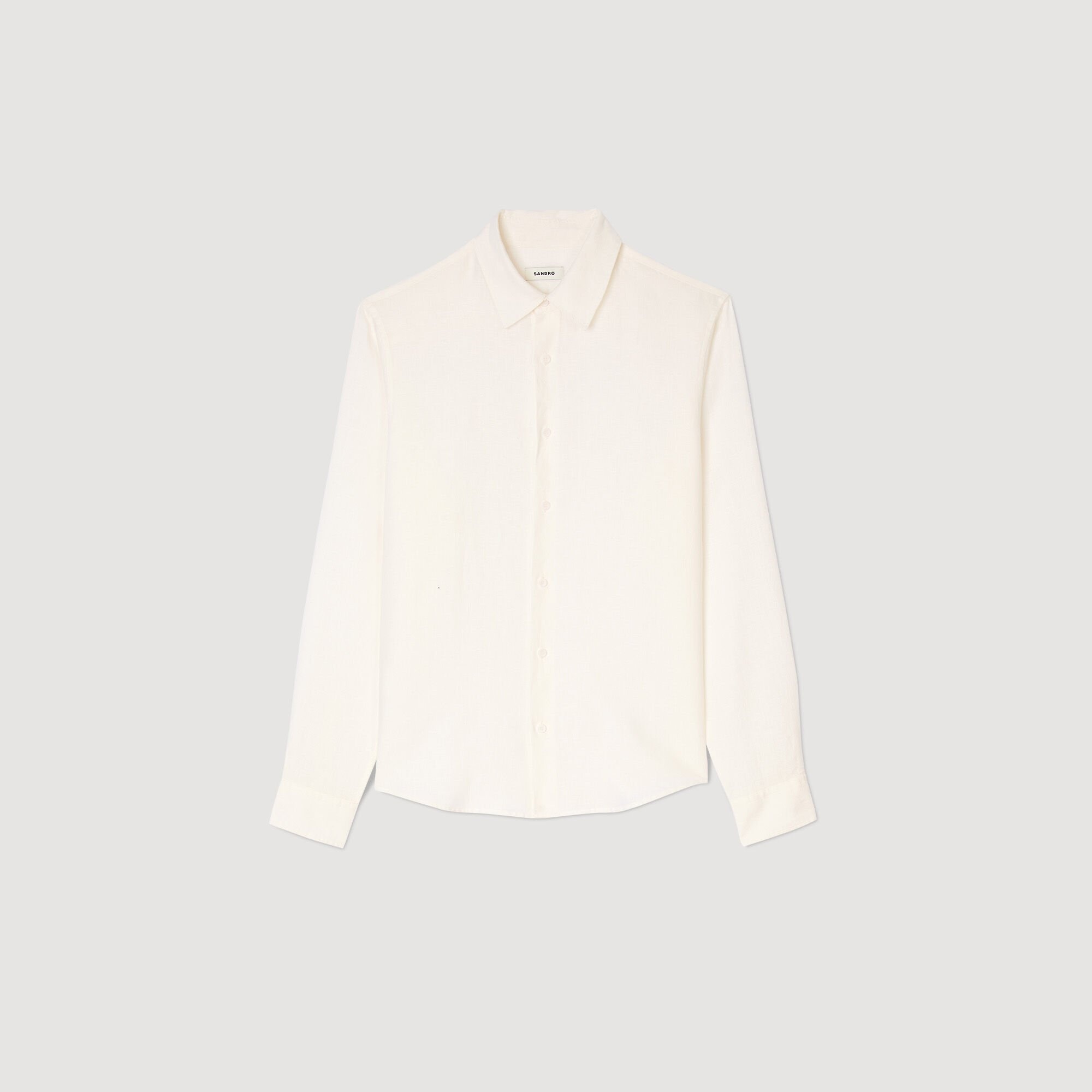 Cotton and linen shirt with classic collar, long sleeves with buttoned cuffs and a button fastening. Sandro Men's cotton and linen shirt Classic fit Long sleeves with button cuffs Button fastening The model is 189 cm / 6'1 tall and wears a size S COMPOSITION Main fabric: 100% linen Reference: SHPCM01117_10