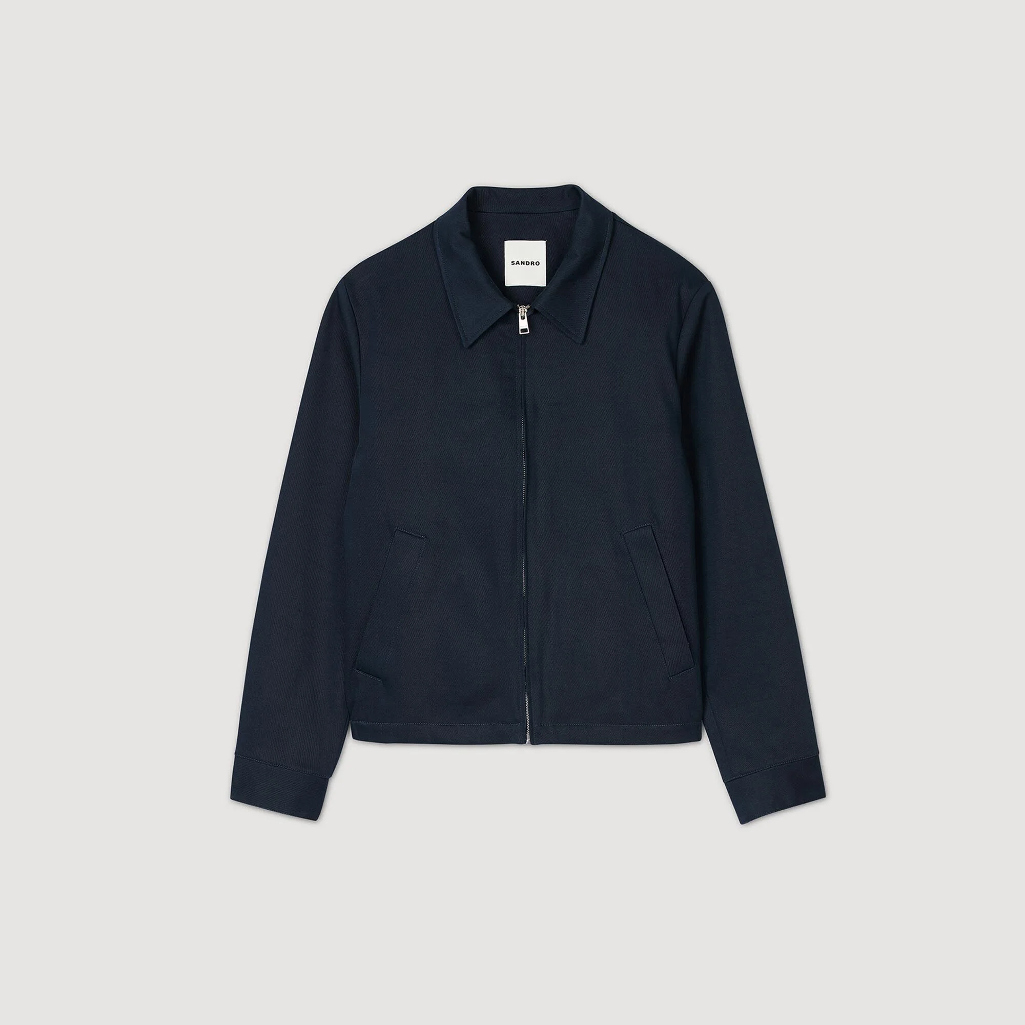 Cotton jacket with a collar, a zipper, long sleeves, buttoned cuffs, and piped pockets. Sandro Men's cotton jacket Shirt collar Long sleeves with buttons on the cuffs Zipper Piped pockets The model is 187 cm / 6'1 tall and wears a size M COMPOSITION Main fabric: 100% cotton Pocket lining: 100% cotton Reference: SHPBL00785_44