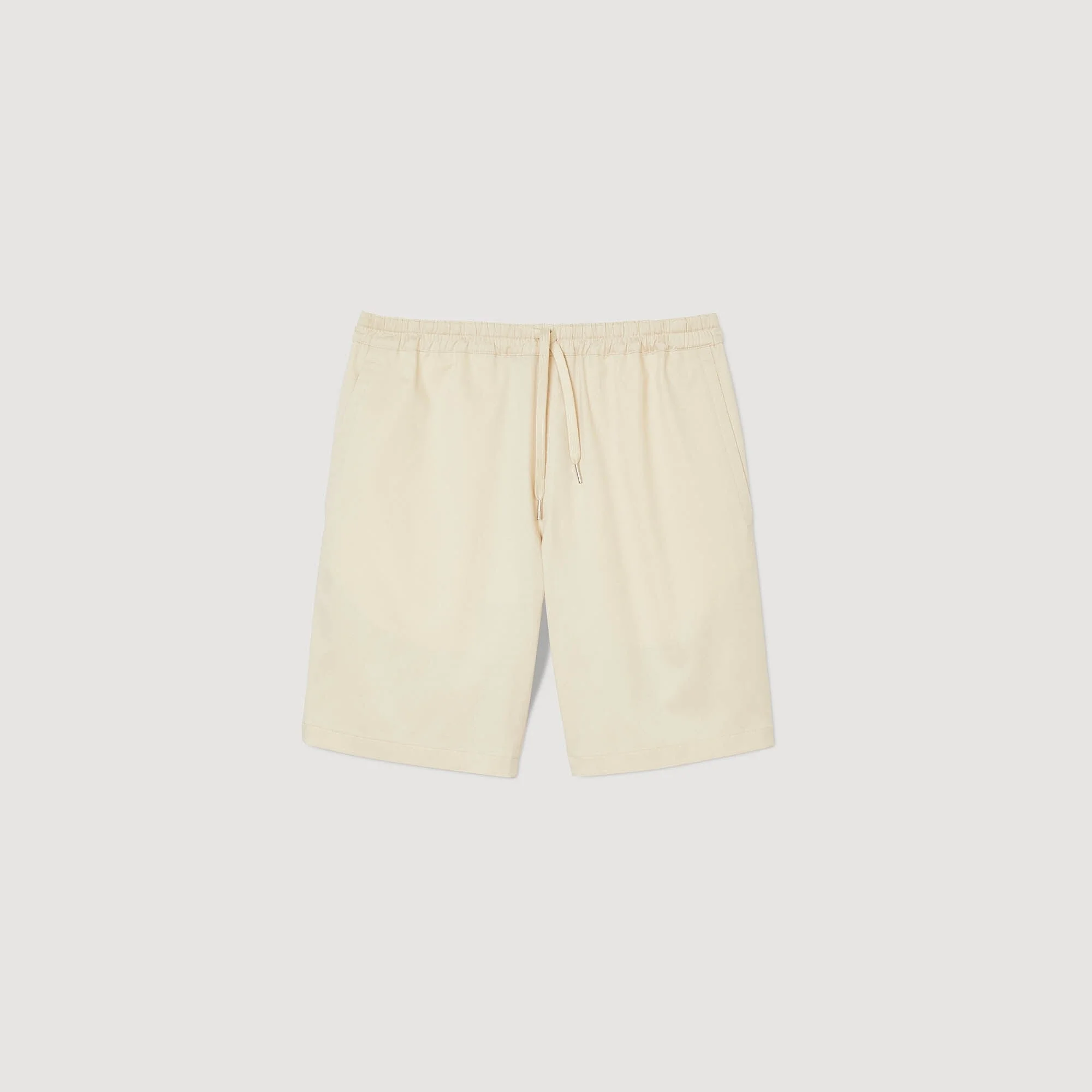 Cotton shorts with an elasticated drawstring waist and side pockets. - Sandro Men's cotton shorts - Elasticated waist with drawstrings - 2 pockets - 2 flap pockets on the back - True to size Reference: SHPBE00057_1611 COMPOSITION & CARE Composition - Main fabric: 58% cotton, 40% lyocell, 2% elastane - Pocket lining: 100% cotton Care advice - Do not wash - Do not bleach - Do not tumble dry - Iron at a maximum temperature of 110°C without steam - F/ - Professional dry clean, with hydrocarbon solvent, gentle treatment