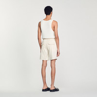 Cotton shorts with an elasticated drawstring waist and side pockets. Sandro Men's cotton shorts Elasticated waist with drawstrings 2 pockets 2 flap pockets on the back Model is wearing a size 38 and is 6'2'' Reference : SHPBE00057 MATERIALS Main fabric: 58% cotton, 40% lyocell, 2% elastane Pocket lining: 100% cotton