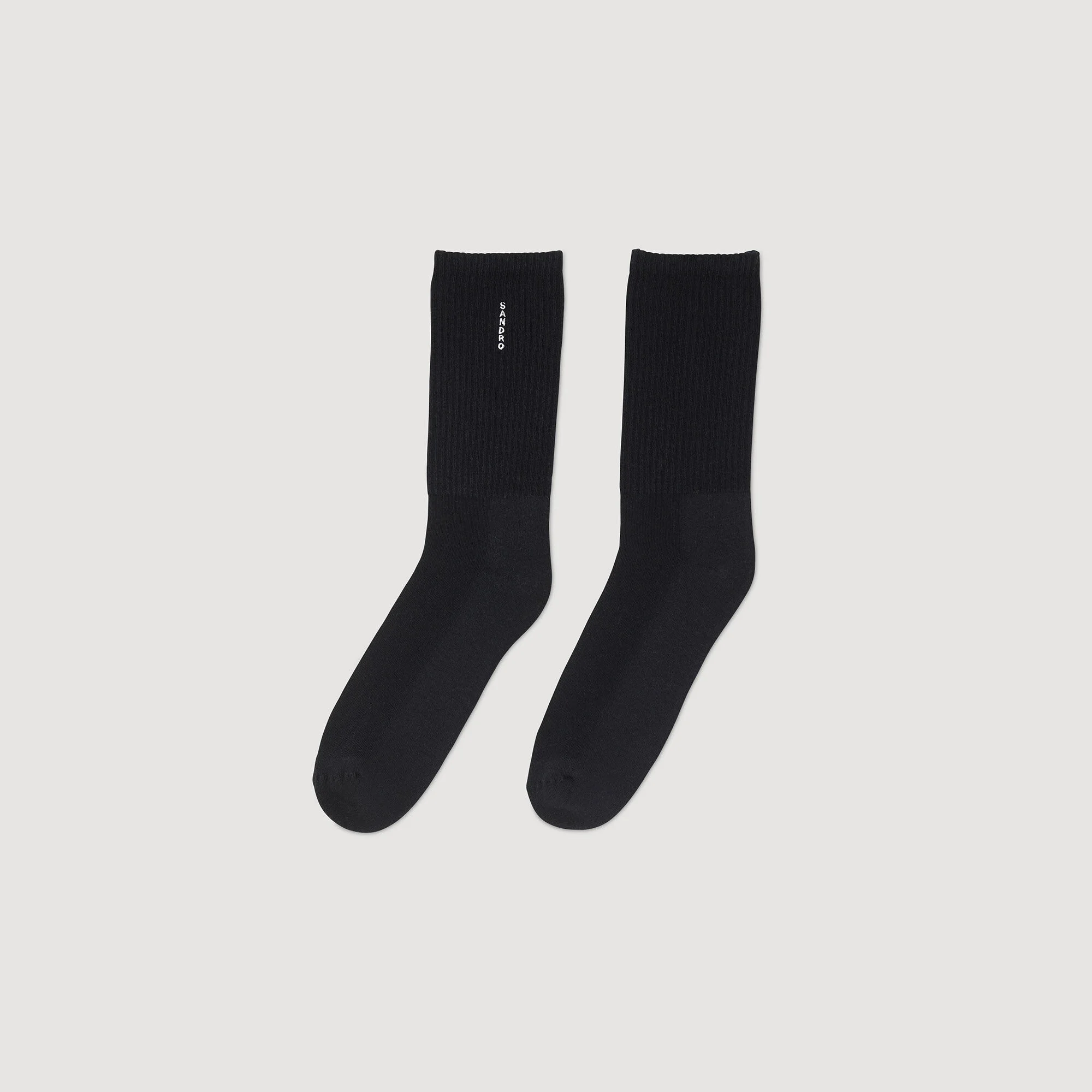 Cotton socks embellished with vertical SANDRO embroidery. - Sandro Men's socks - Embroidered logo - Sizes 40 to 45 The cotton in this item was produced organically via a cultivation method that preserves biodiversity and bans the use of pesticides and GMOs. Reference: SHABO00830 COMPOSITION & CARE Composition - Main fabric: 80% cotton, 18% polyamide, 2% elastane - Embroidery: 100% polyester Care advice - Normal cycle 30° - Do not bleach - Do not tumble dry - Do not iron - Do not dry clean