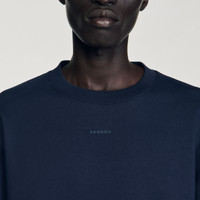Non-brushed fleece sweatshirt with round neck, long sleeves and with rubberized SANDRO logo on front. - Sandro Men's non-brushed fleece sweatshirt - Round neck - Long sleeves - Logo in rubber - Ribbed trim - True to size Reference: SHPSW00739_125 COMPOSITION & CARE Composition - Main fabric: 100% cotton - Rib: 97% cotton, 3% elastane Care advice - Gentle cycle 30° - Do not bleach - Do not tumble dry - Iron at a maximum temperature of 110°C without steam - Do not dry clean