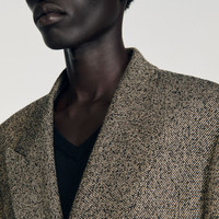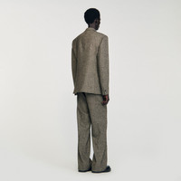 Classic wool suit jacket featuring a back vent, long sleeves, a double-breasted four-button fastening and flap pockets. - Sandro Men's suit jacket - Tailored collar - Double-breasted - Long sleeves - 4-button fastening at front - 1 button on sleeve ends - Vent in middle of back - 2 front flap pockets - Inside pockets - True to size Reference: SHPVE01173_A451 COMPOSITION & CARE Composition - Main material: 52% polyester, 15% acrylic, 15% wool, 12% viscose, 5% silk, 1% elastane - Body lining: 56% polyester, 44% viscose - Pocket lining: 65% polyester, 35% cotton Care advice - Do not wash - Do not bleach - Do not tumble dry - Iron at a maximum temperature of 110°C without steam - F/ - Professional dry clean, with hydrocarbon solvent, gentle treatment