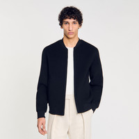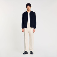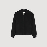 Double-faced wool varsity jacket with round collar, long sleeves, pockets and ribbed trim. - Sandro Men's double-faced wool jacket - Classic varsity style - Round ribbed neck - Long sleeves with ribbed cuffs - Zip fastening - 2 pockets - Metal SANDRO logo on back Reference: SHPBL01060_20 COMPOSITION & CARE Composition - Main fabric: 80% wool, 20% polyamide - Lining: 100% polyester - Rib: 73% viscose, 25% polyester, 2% elastane Care advice - Do not wash - Do not bleach - Do not tumble dry - Iron at a maximum temperature of 110°C without steam - F/ - Professional dry clean, with hydrocarbon solvent, gentle treatment