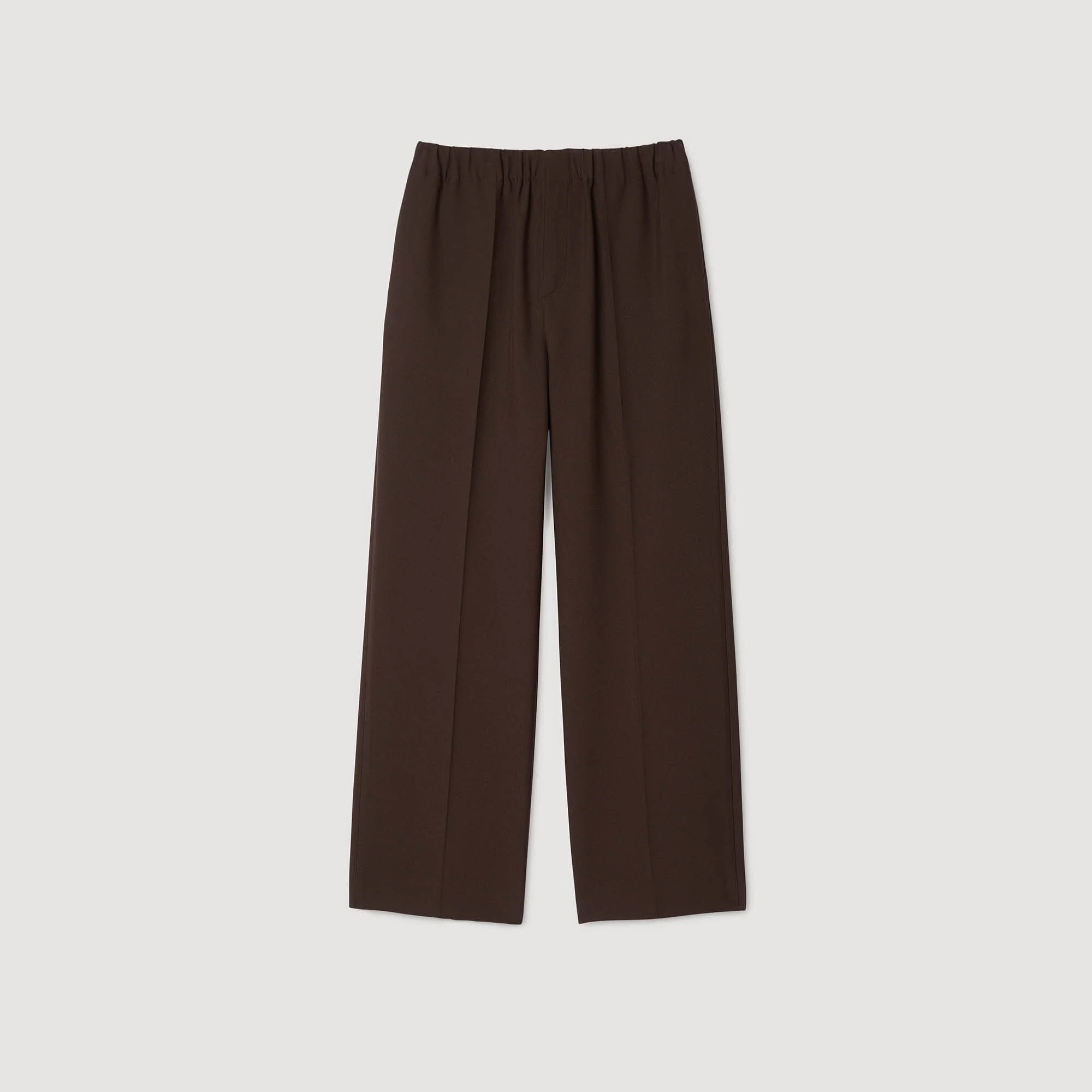 Wide-leg jersey trousers with an elasticated waist and pockets on the sides. - Sandro Men's wide-leg trousers - Elasticated waist - Side pockets - Designed for a relaxed fit Reference: SHPPA00893_70 COMPOSITION & CARE Composition - Main material: 68% polyester, 28% viscose, 4% elastane - Pocket lining: 100% cotton Care advice - Regular cycle 30° - Do not bleach - Do not tumble dry - Iron at a maximum temperature of 110°C without steam - F/ - Professional dry clean, with hydrocarbon solvent, gentle treatment