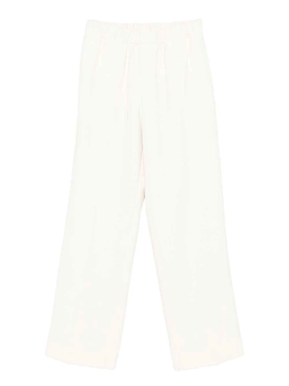 elastic-waistband trousers Highlights - Off-white - Elasticated waistband - Side seam-pockets - Back welt-pocket Imported Composition Outer: Polyester 68%, Viscose 28%, Spandex/Elastane 4% Lining: Cotton 100% SIZE & FIT Model measurements Height 6 ft 1 in(1.85 m) Bust/Chest 38.58 in(98 cm) Hips 37 in(94 cm) Waist 30.31 in(77 cm) Washing instructions Machine Wash