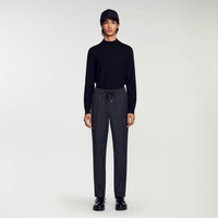 Straight-leg pants with an elasticated drawstring waist and pockets. Sandro Men's straight-leg pants Elasticated waist Drawstring 2 side pockets 2 back pockets Model is wearing a size 38 and is 6'2'' The model is 190 cm / 6'3 tall and wears a size 38 / 10 UK COMPOSITION Main fabric: 70% wool, 28% polyester, 2% elastane Lining: 100% cotton Reference: SHPPA01144_21