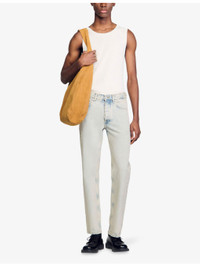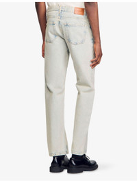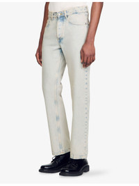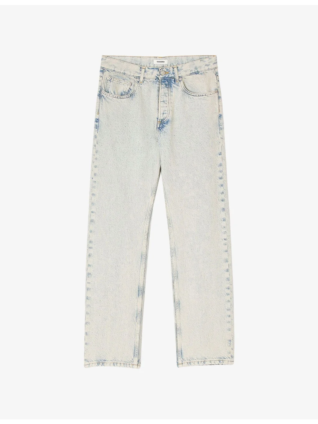 PRODUCT DETAILS - Sandro denim jeans - 100% cotton - Button and zip-fly fastening - Regular fit, mid-rise, straight leg, belt loops, side pockets, back pockets, branded leather tab, faded wash - Machine wash mild - True to size - Model is 6ft 2in/1.88m and wears a size UK 30 - Midweight, non-stretch Ref: R04411957