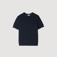 Lightweight fine knit T-shirt with round neck and short sleeves. - Sandro Men's fine knit T-shirt - Round neck - Short sleeves - True to size Reference: SHPTR00655_44 COMPOSITION & CARE Composition - Main fabric: 67% cotton, 33% polyamide - Rib: 64% cotton, 35% polyamide, 1% elastane Care advice - Hand wash - Do not bleach - Do not tumble dry - Iron at a maximum temperature of 110°C without steam - F - Professional dry clean, with hydrocarbon solvent, normal treatment